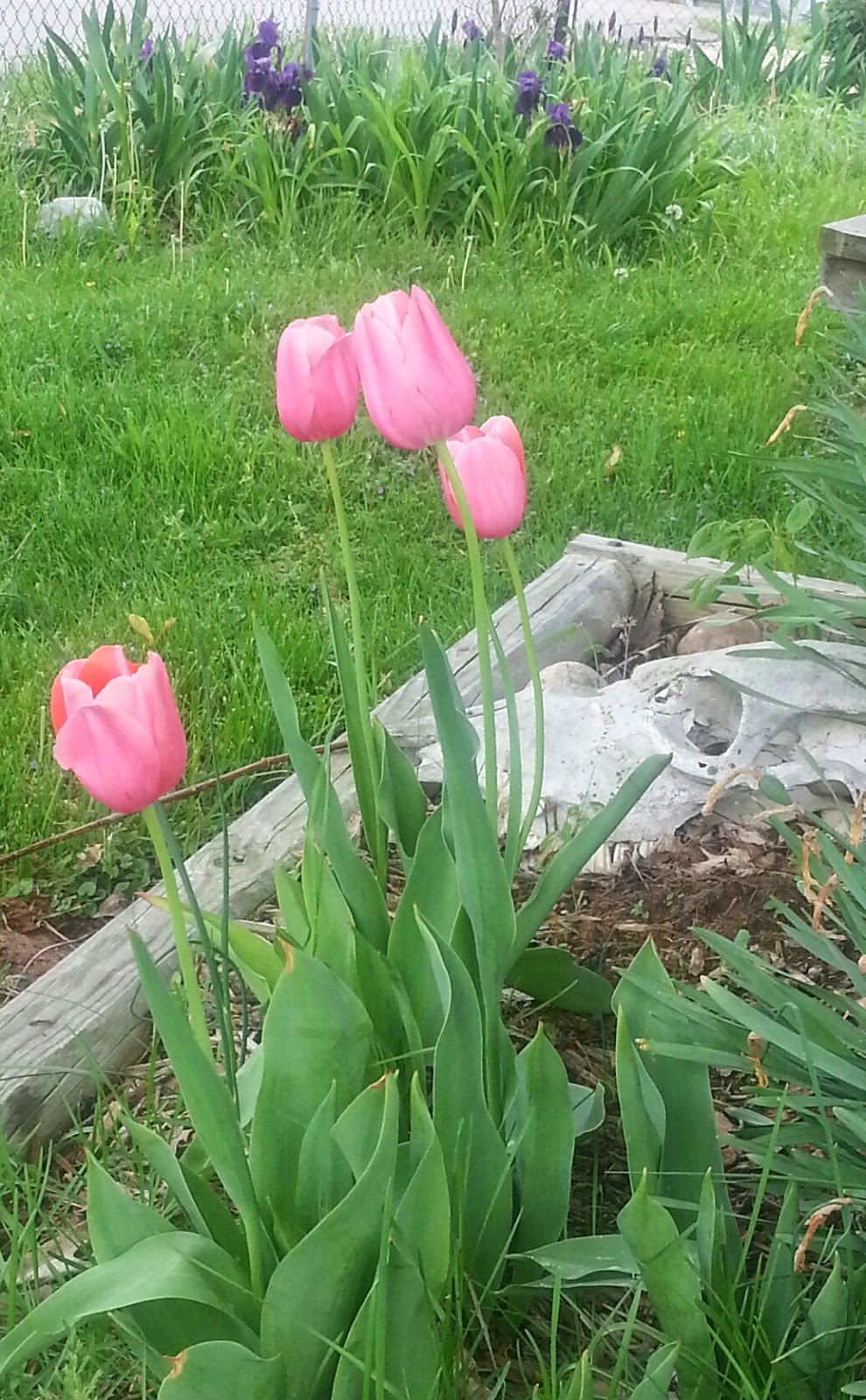 While the fruit trees at the farm have been getting settled in, the flowers back at our suburban house have been really putting on a good show. Well, it's a good show if you are like me, and like to look at flowers (if you don't like looking at photos of flowers, you may want to stop right here!). Only four tulips bloomed this year, but they were perfect pink ones, so I'm not complaining.