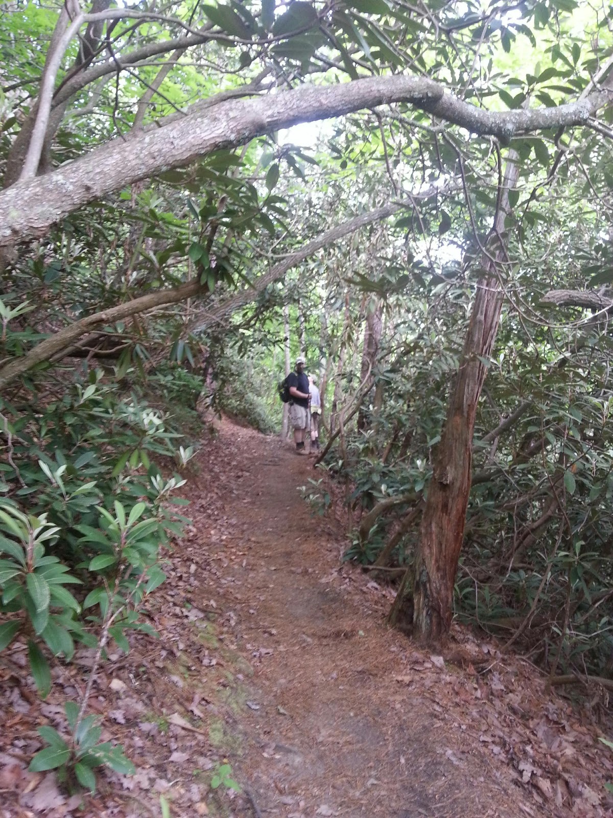 The trail itself wasn't very hard to hike, and parts of the trail were lined with the dense evergreen leaves of the rhododendron, and the they were in full bloom. Weren't we lucky to get to see all those blooms?